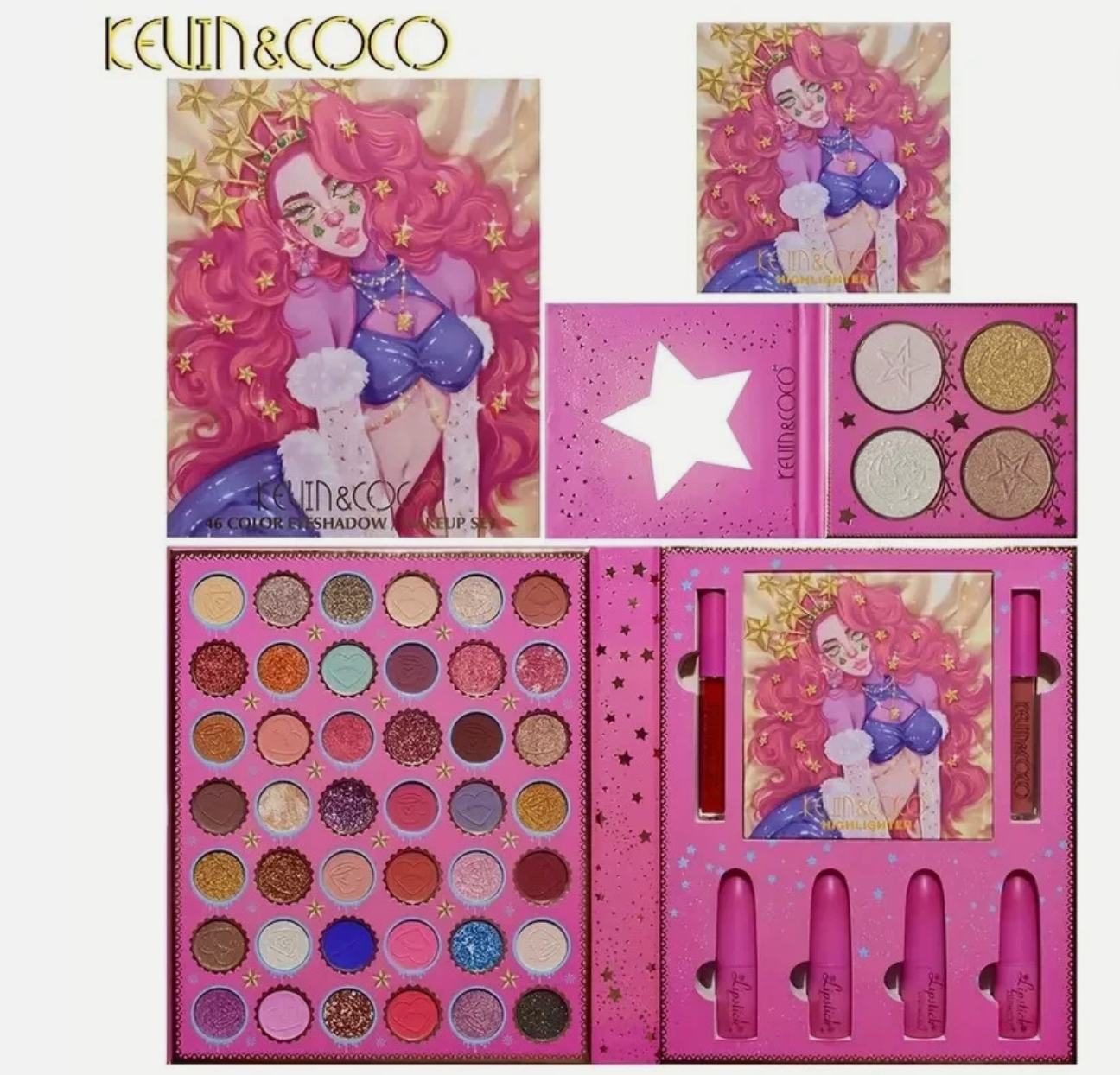 SALE! KEVIN & COCO PINK HAIR W/STAR'S EYESHADOW/ FACE/LIPPIE PALETTE SET-